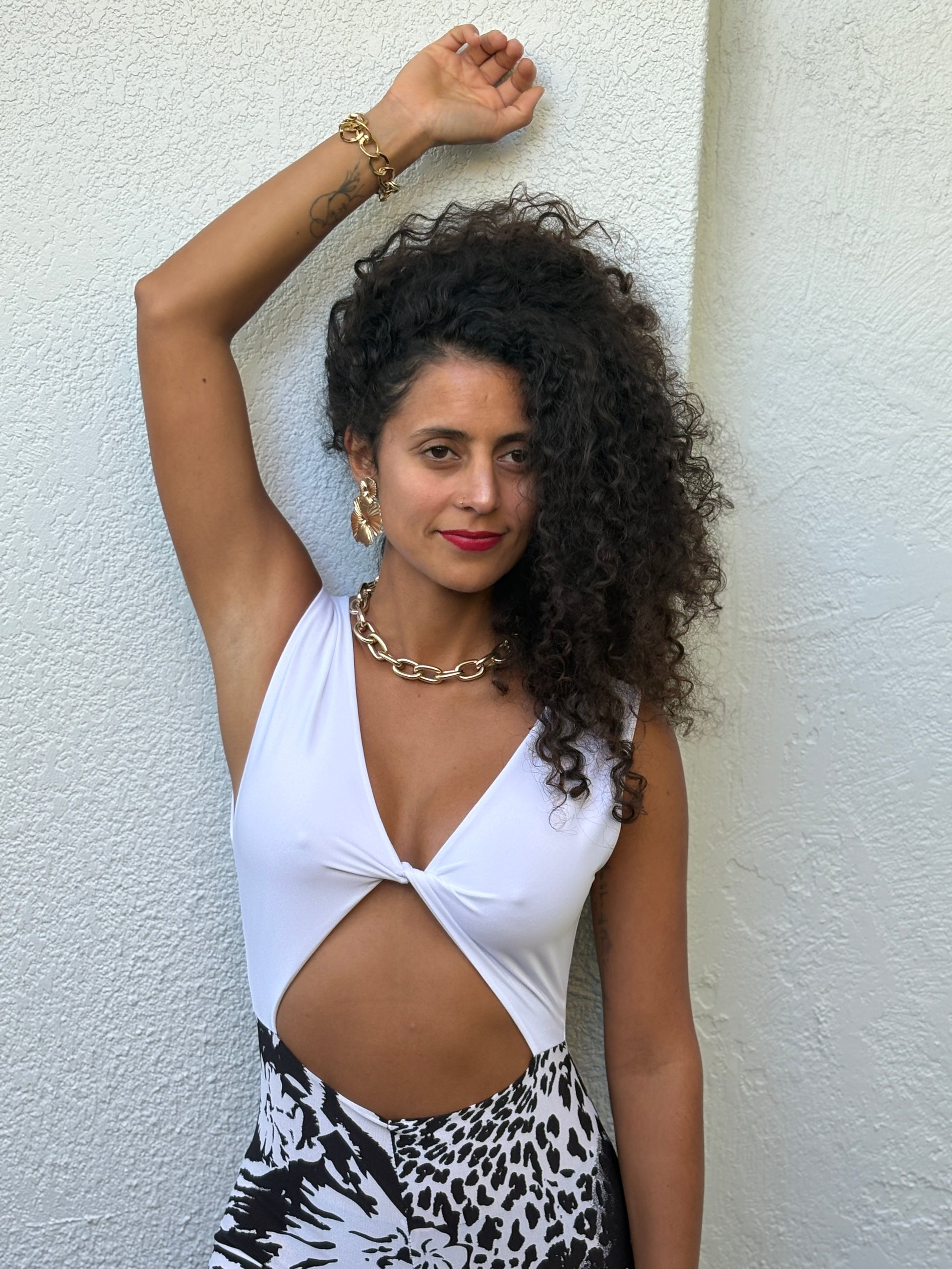 Step into effortless elegance with our White Top & Floral Jumpsuit, designed for comfort, style, and movement. The fitted white bodice contrasts beautifully with the black-and-white floral flowy pants, creating a striking silhouette that’s perfect for dancing or special occasions.
